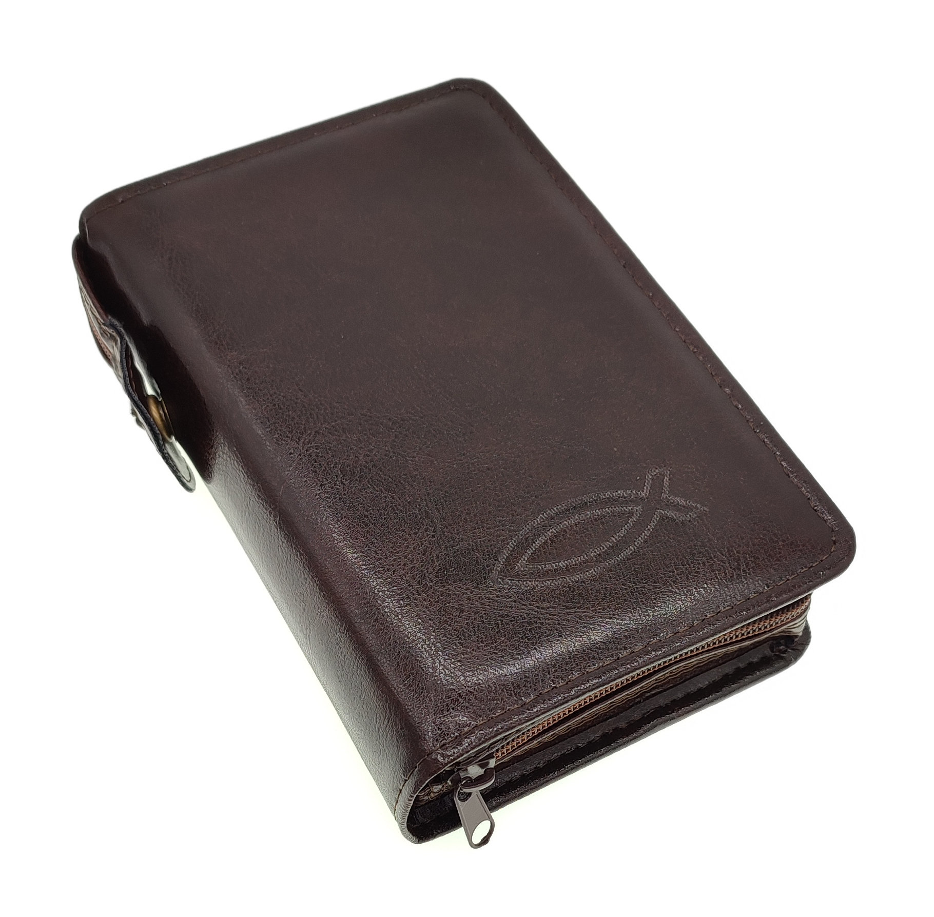 Корпус, сделанный из высококачественного скаджу, закрыт с застежкой -молнией. Великая защита Святой Библии от разрушения. Соответствует Библии тысячелетия, формат 12x18см.