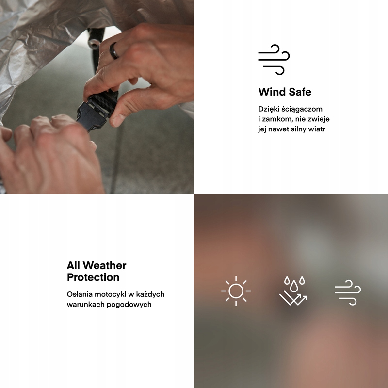 - Крышка защищает мотоцикл от грязи и негативного воздействия погодных условий