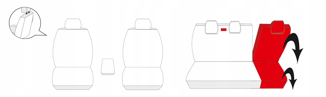 В зависимости от модели автомобиля, набор включает в себя крышки для таких элементов, как передний или задний подлокотник, замки, позволяющие использовать таблицы и карманы в задней части передних сидений, крышки сломанными головными заводами, боковые покрытия колесной арки (столбцы)