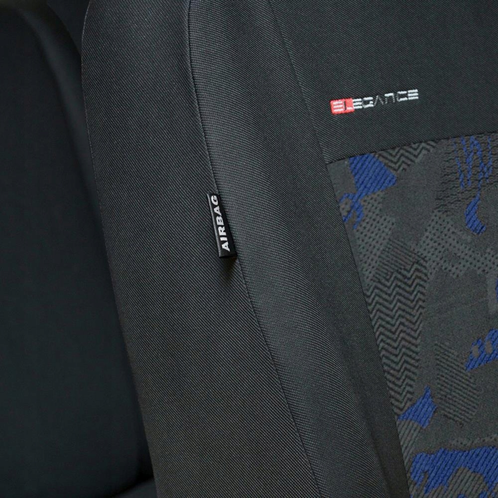 Элегантность 1+1 (установлено для передних сидений) из высококачественных велюров и долговечного полиэфирного вязания в боковых частях крышки. Все материалы полностью ламинированы с 3 -миллиметровой полиуретановой пеной, предотвращая крышки покрытий относительно сидений. В местах, более восприимчивых к ссадионам, использовался трехслойный материал (дополнительно усиливается с подкладкой).