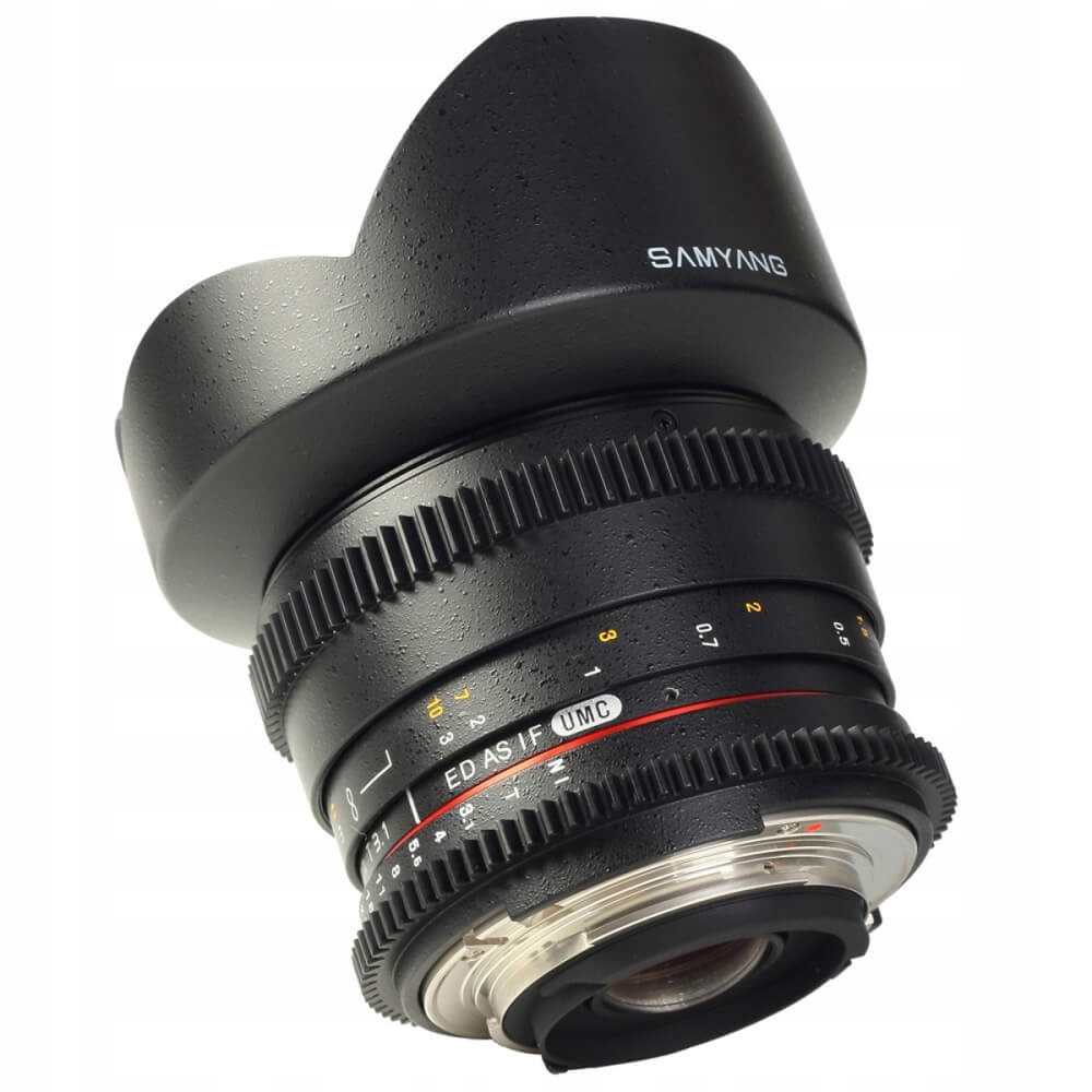 Самьянг оснащен бесступенчатой регулировкой диафрагмы, его оптическая структура основана на 14 элементах в 12 оптических группах. Он оснащен одной линзой ED, двумя асферическими элементами – гибридного типа и стандартного. Все линзы покрыты высококачественным антибликовым покрытием нового поколения UMC (Ultra Multi Coated). Такая оптическая структура и использование материалов высочайшего качества делают изображения, снятые этим объективом, высочайшего качества.