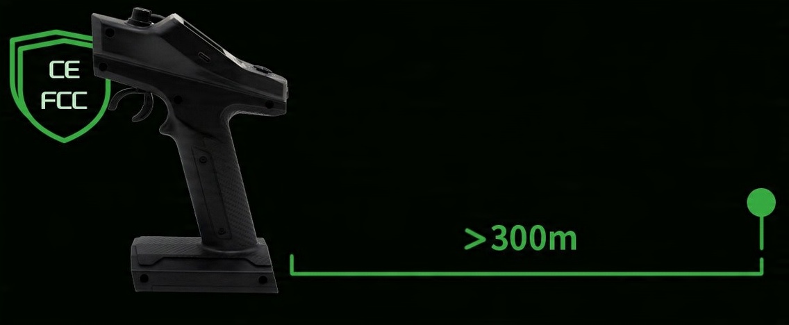 Согласно двойной сертификации CE и FCC, дальность действия оборудования составляет до 300 м, что отвечает потребностям самых продвинутых моделистов.