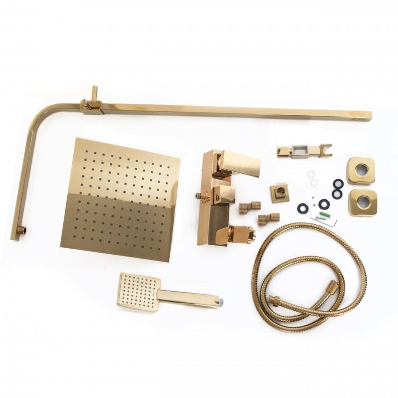 Душевой набор с тропическим душем 25 см и изливом - золото