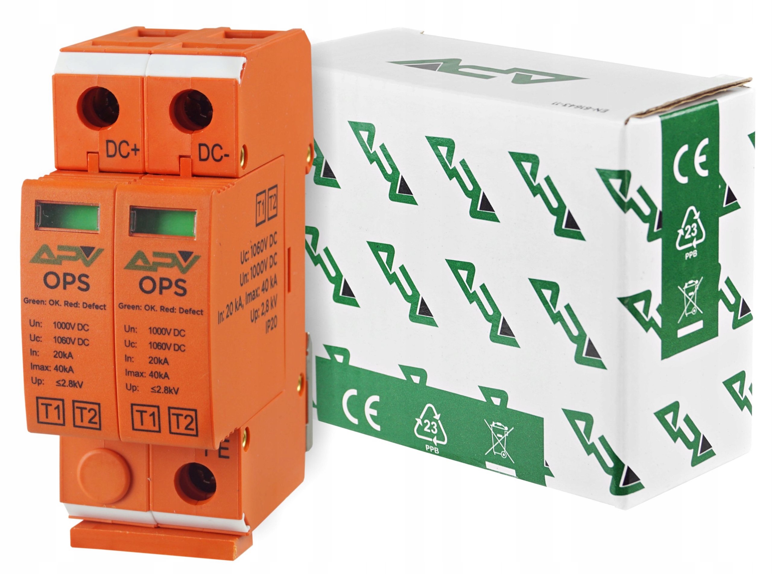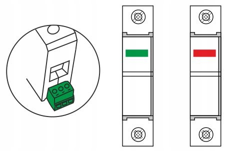 Устройства защиты от перенапряжения класса B+C (T1+T2) используются для защиты фотоэлектрических установок от наведенных напряжений, коммутационных напряжений и напряжений, вызванных атмосферными факторами. Они оснащены визуальным индикатором срабатывания (зеленый — защита, красный — нет защиты).