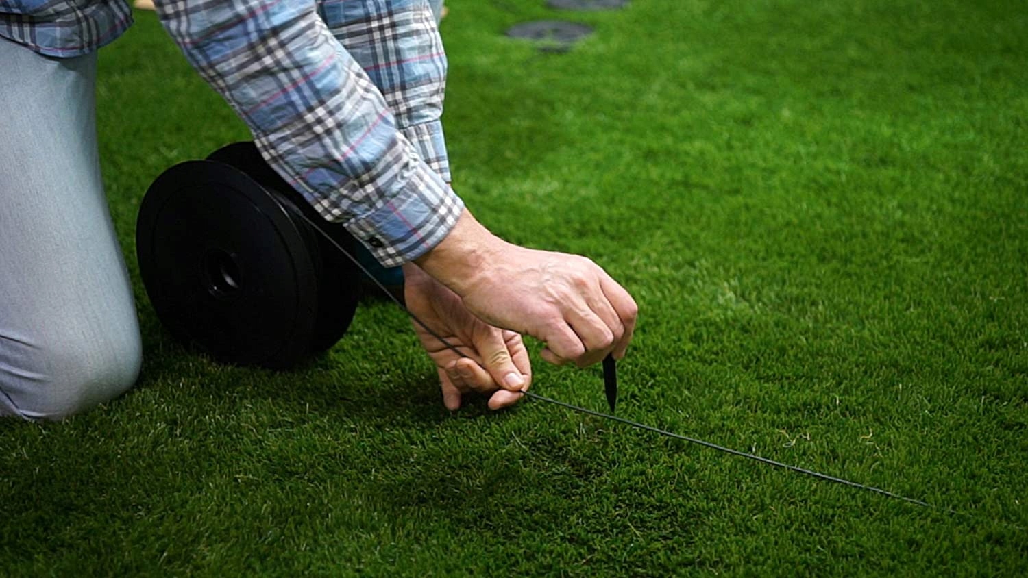 Для крепления кабеля к газону используются специальные штыри из высококачественного атмосферостойкого пластика. Благодаря использованию штифтов кабель прочно крепится к земле, не подвергается случайному перерезанию косилкой и излучаемый сигнал не нарушается.