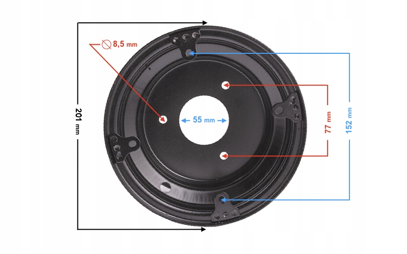- расстояние диагональных крепежных отверстий под колпаки: 152 мм
