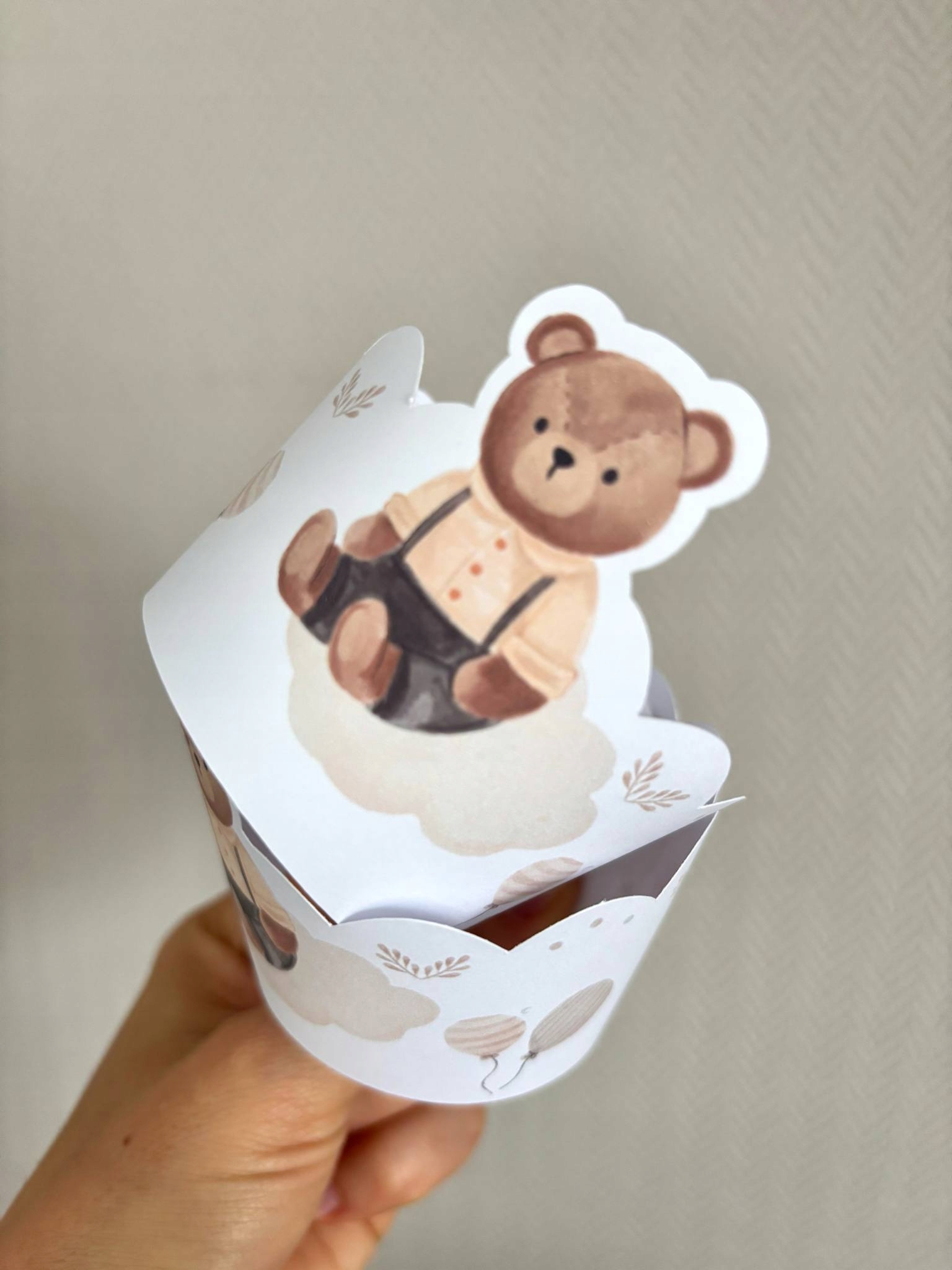 Если вы планируете вечеринку в нежных, натуральных тонах с мотивом плюшевого мишки, идеальным выбором станут чехлы для маффинов из коллекции BEAR. Их тонкий дизайн в оттенках бежевого и серого создаст теплую атмосферу на вашем столе. Этот милый мишка напоминает детский праздник или вечеринку в ожидании малыша.