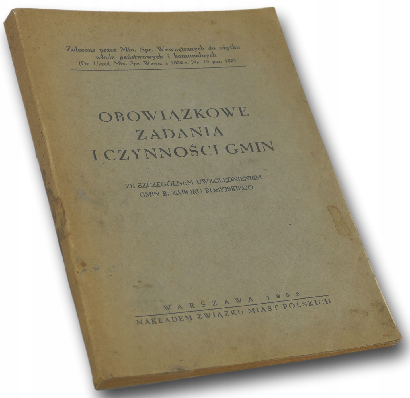 Книга «Обязательные задачи и деятельность муниципалитетов с особым акцентом на муниципалитеты бывшего российского раздела» представляет собой издание, изданное в 1932 году Ассоциацией польских городов.
