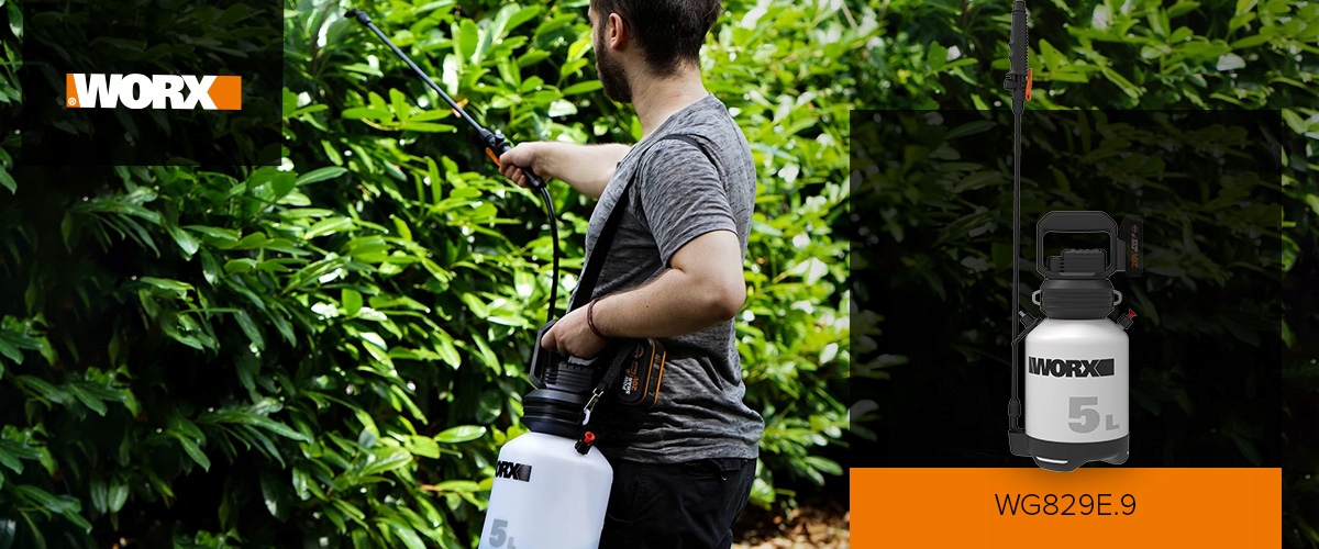 Новый Worx WG829E оснащен 5-литровым баком и регулируемой насадкой. Идеально подходит для полива, внесения удобрений, борьбы с сорняками и вредителями.