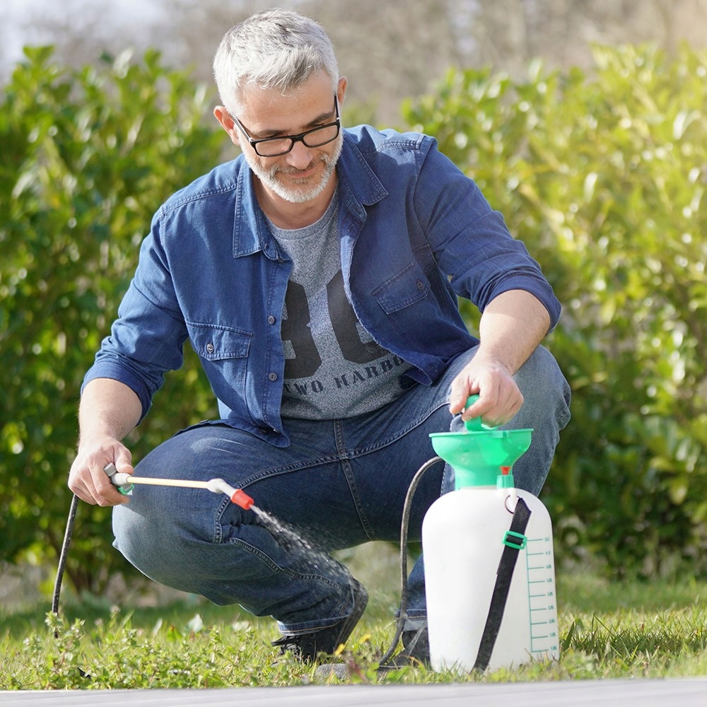 ✅ Оснащен длинным армированным шлангом, позволяющим легко и удобно добираться даже до самых высоких растений, когда опрыскиватель стоит на земле или на тележке.