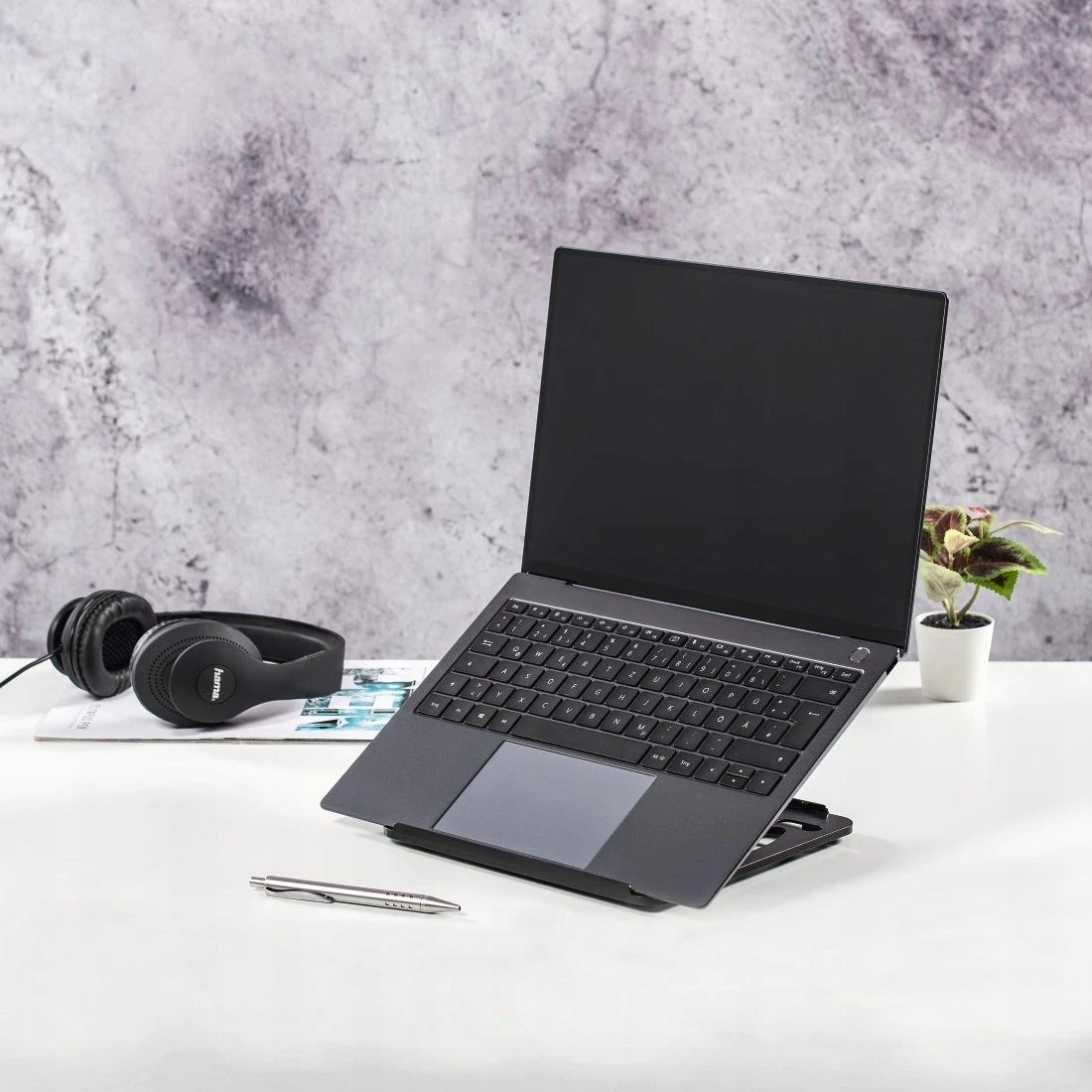 - Стабильная опорная поверхность предотвращает перегрев ноутбука на подставке, поскольку вентиляционные отверстия не заблокированы.