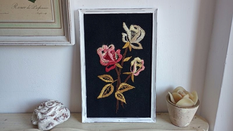 OBRAZ HAFT RĘCZNY W RAMIE RÓŻE