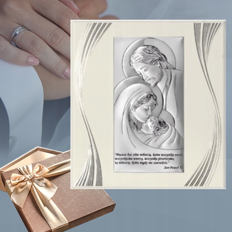 ◉ Изящная серебряная картина с изображением Святого Семейства – прекрасный сувенир на память о многих важных торжествах