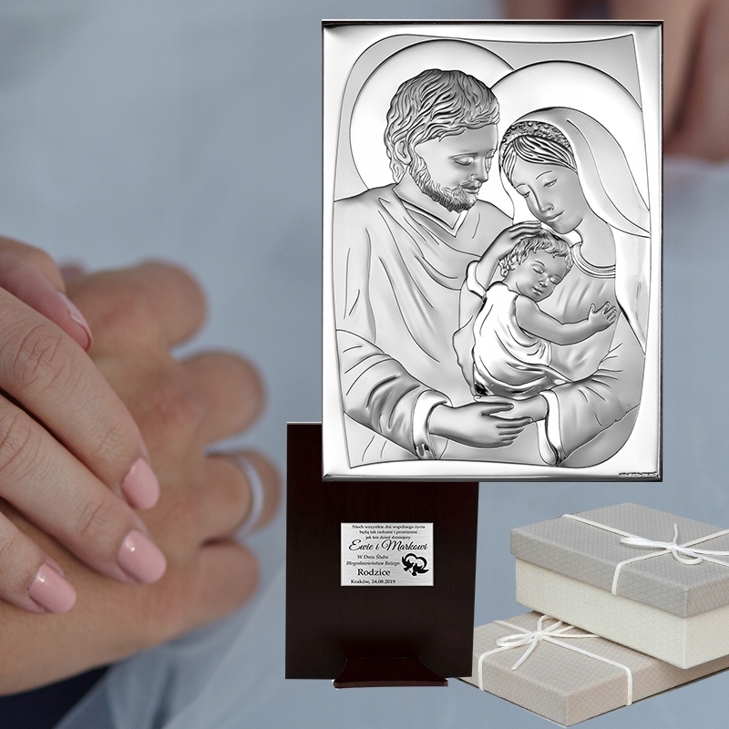 ◉ Изящная серебряная картина с изображением Святого Семейства – прекрасный сувенир на память о многих важных торжествах