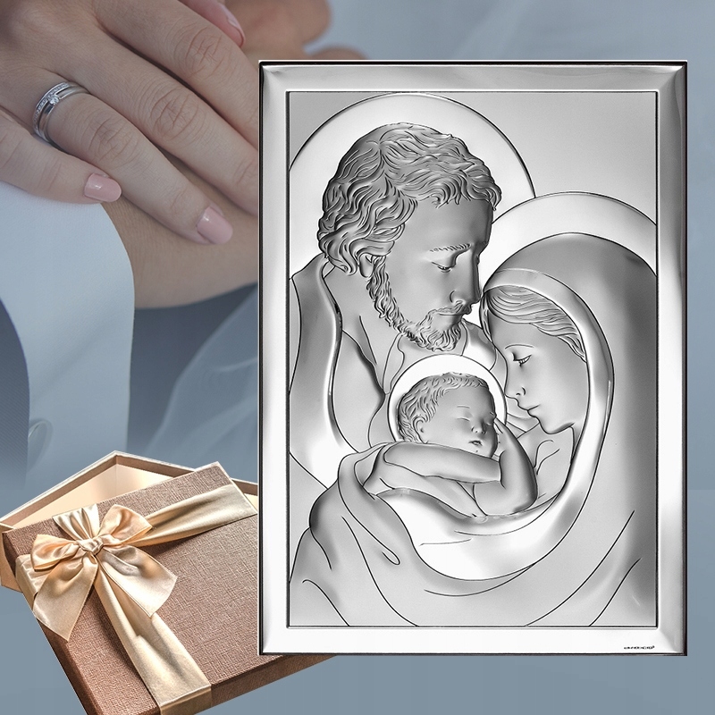 ◉ Стильная серебряная картина с изображением Святого Семейства – прекрасный сувенир на память о многих важных торжествах