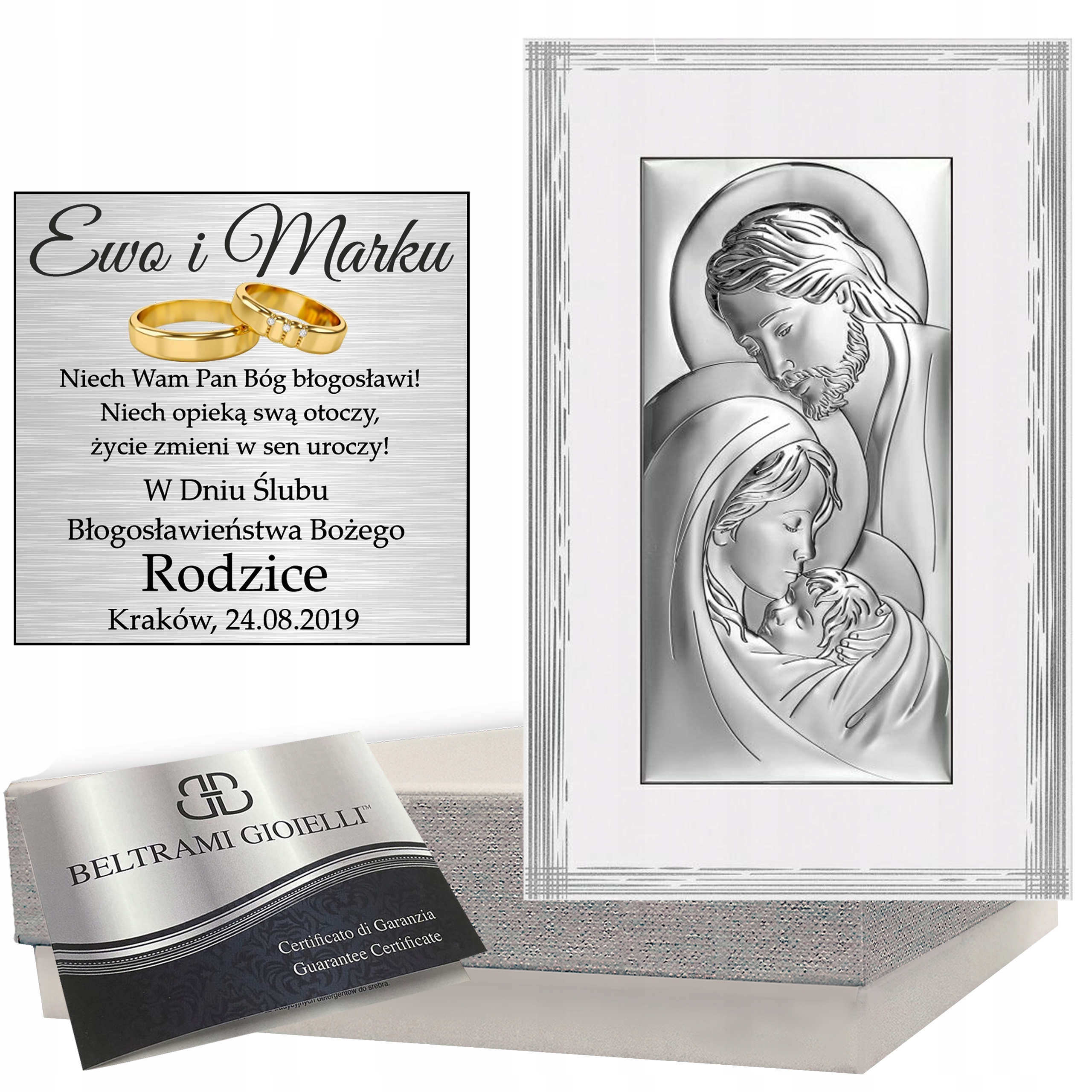 Священные изображения являются важным элементом нашего предложения, поэтому мы рекомендуем вам подробно ознакомиться с предлагаемым ассортиментом, в том числе с серебряными святыми образами с посвящениями. Они прекрасно символизируют семейные ценности, которые чрезвычайно важны для каждого из нас. Представляем незабываемый подарок на крестины. Изысканная картина с изображением Ангела-Хранителя с личным посвящением запечатлит то, что мимолетно: радость этого особенного дня для всей семьи - Святого Крещения. Картина с изображением Ангела-Хранителя.Прекрасный подарок ко Святому Крещению! Безусловно незаменимыйКрещенский сувенир, подарок на Святое Крещение, символизирующий волшебную заботуАнгела-Хранителя.