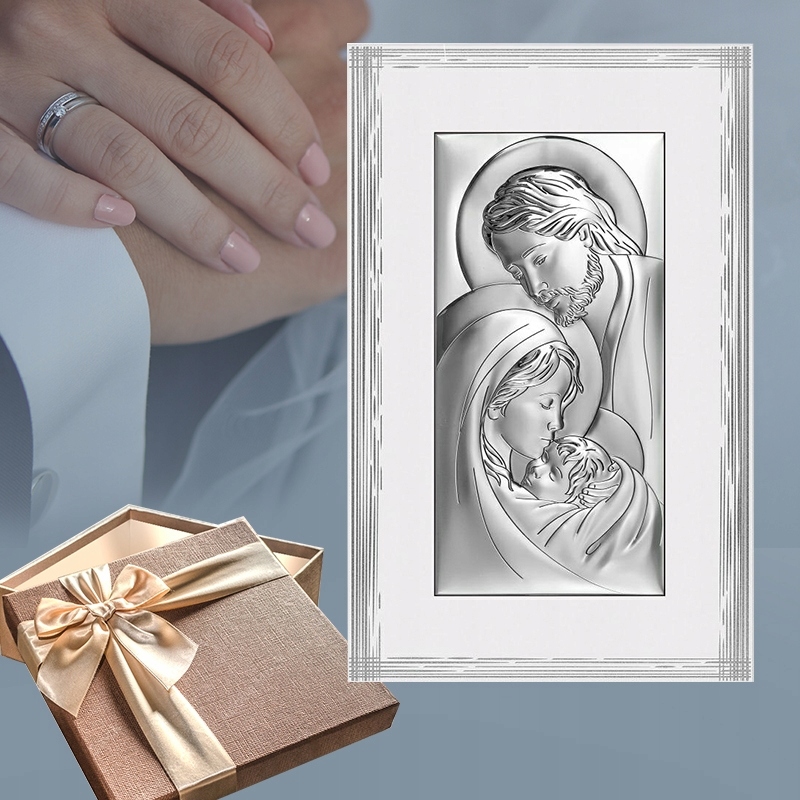 ◉ Изящная серебряная картина с изображением Святого Семейства – прекрасный сувенир на память о многих важных торжествах