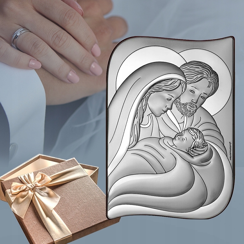 ◉ Изящная серебряная картина с изображением Святого Семейства – прекрасный сувенир на память о многих важных торжествах