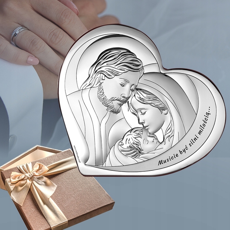 ◉ Изящная серебряная картина с изображением Святого Семейства – прекрасный сувенир на память о многих важных торжествах