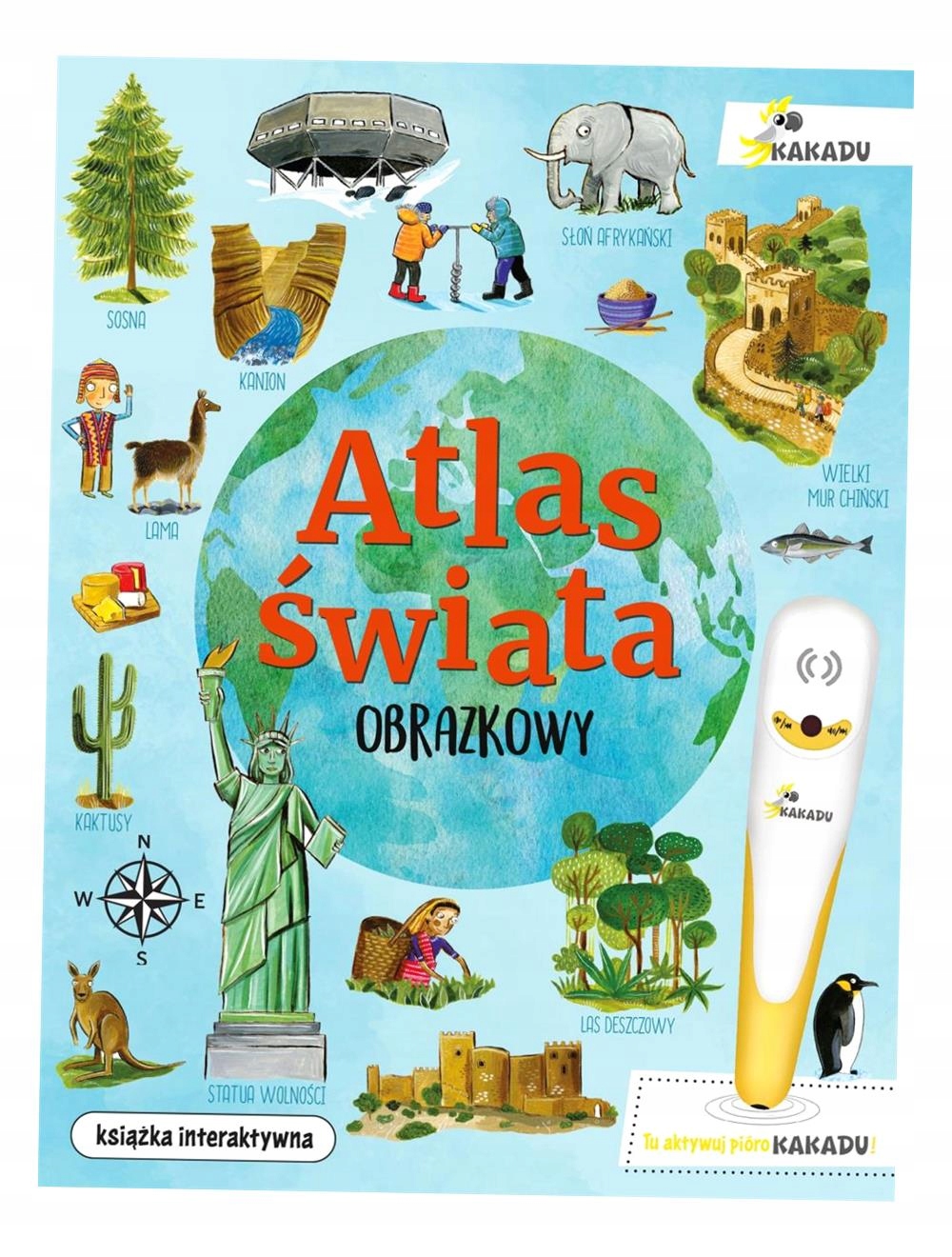 Картина атласа мира Это книга совместимый с ручкой какаду , который запускает тексты и звуки, закодированные на страницах. Публикация является частью инновационной системы обучения и веселья в одной.