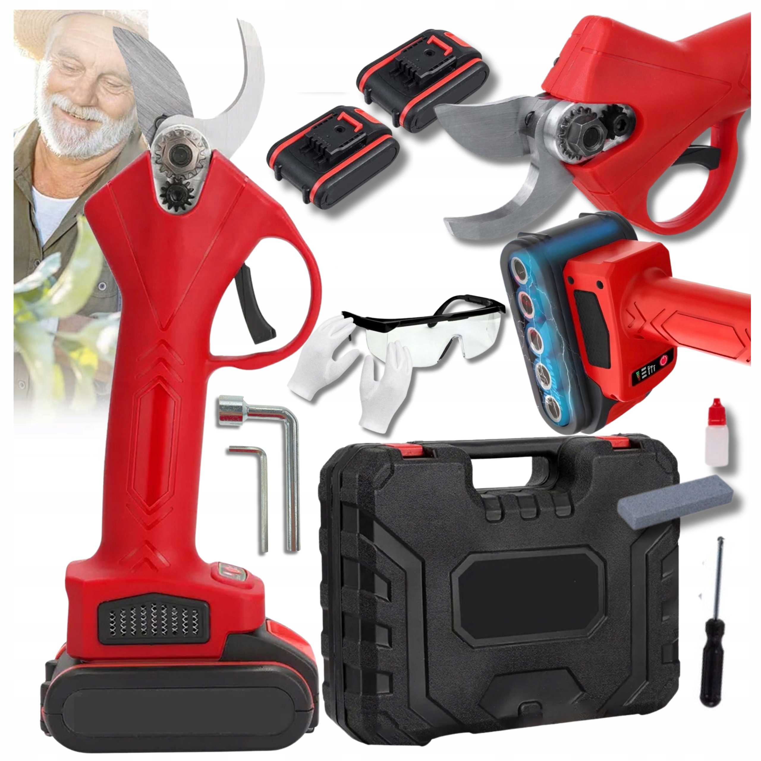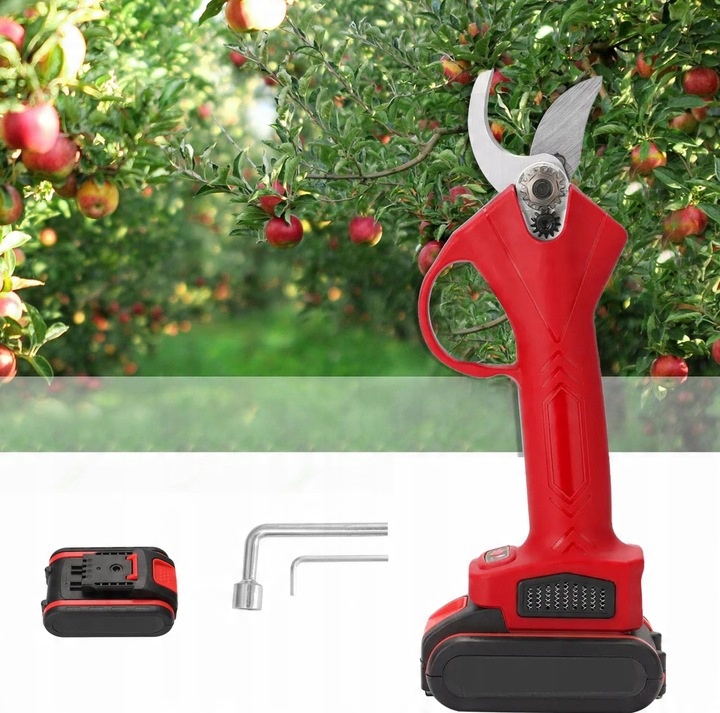 Обрезка батареи - ваш незаменимый партнер в саду! Наши ножницы для обрезки батареи - это современный инструмент, который обеспечивает точный, быстрый и комфортный вырез в всех условиях. Благодаря двум сильным литий-ионным аккумуляторам, вы можете работать непрерывно в течение 5 часов, и его эргономическая ручка делает каждую работу удовольствием. Встроенные в систему поддержки и высококачественные лезвия гарантируют гладкие, неявные края -Идеально подходит как для фруктовых деревьев, так и для декоративных кустарников