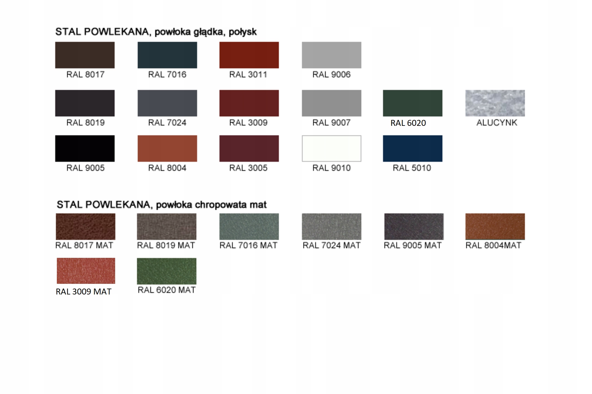Изготавливается из стали с покрытием, глянцевым или матовым, толщиной 0,50 мм. В разложенном виде ширина оклада составляет 25 см.