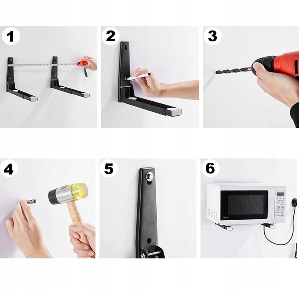 💪 💪susting качественный материал: b> Держатель стены для микроволновой печи изготовлен из нержавеющей стали, черной покраски, является нержавеющим, долговечным, долговечным и не деформируется.