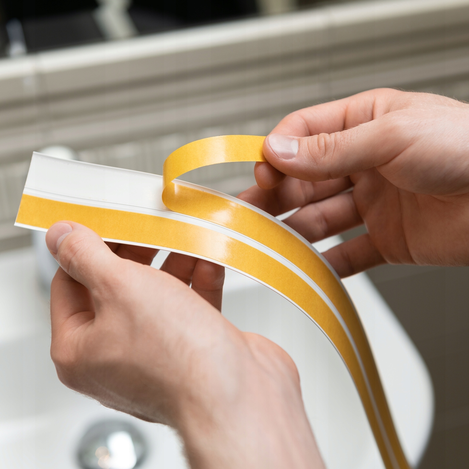 Наша лента имеет две полоски качественного клея шириной 15 мм каждая, что значительно облегчает монтаж и гарантирует хорошую фиксацию. Благодаря этому полоски не отслаиваются.