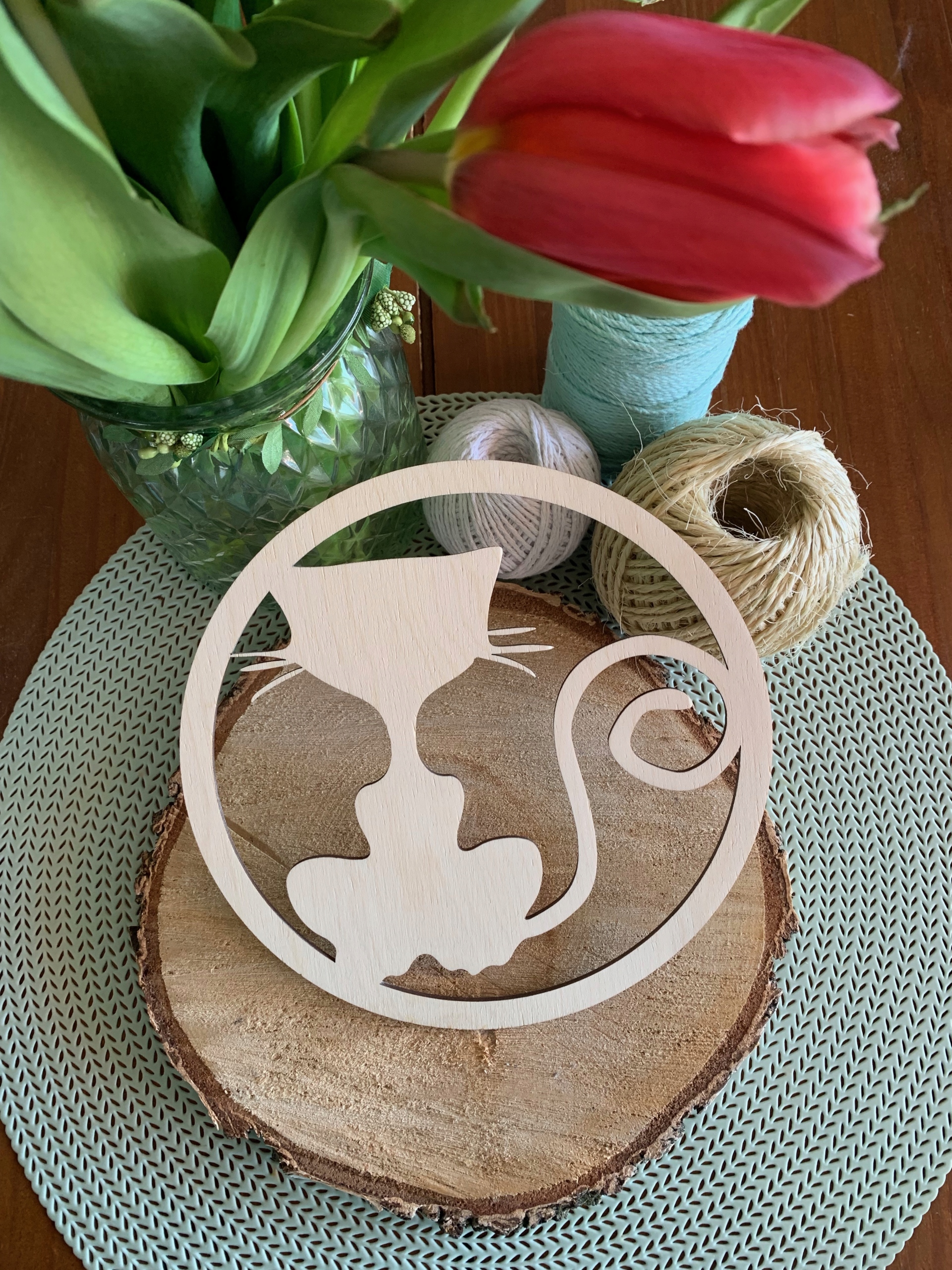 Предмет продажи — обруч для макраме или ловец снов в форме круга с котиком.