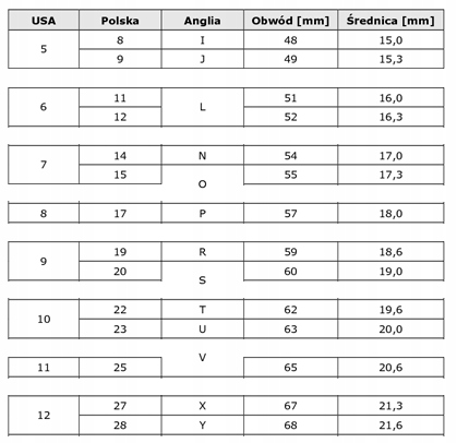 Таблица внизу страницы предназначена только для иллюстративных целей и используется для чтения значений диаметра и окружности польских размеров.