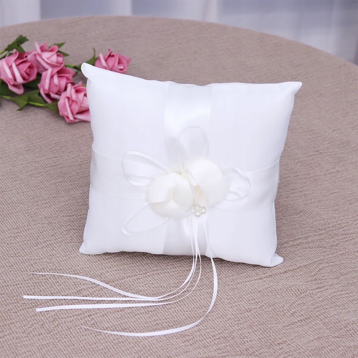1 x ВИНО 20х20см Красивые бутоны цветов и искусственный жемчуг Свадебный декор Свадебная церемония Карманное кольцо Подушка на предъявителя с лентами (белая)