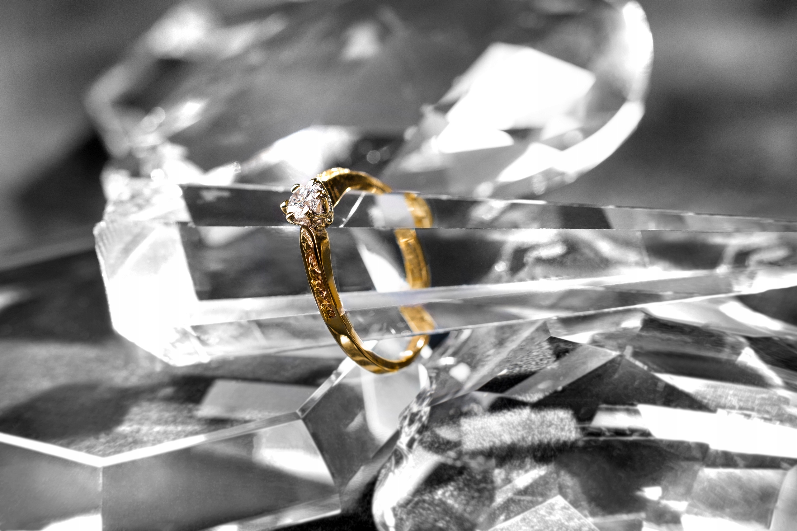 Обручальное кольцо с красивым бриллиантом, усыпанным самородками