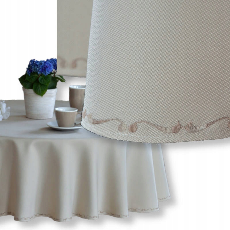 КРУГЛЫЙ ВЫШИВАННЫЙ ПЯТЕНОСТОЙКИЙ СКАТЕРЬ, БЕЖЕВЫЙ МАРИЯ
