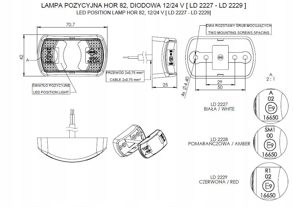 OBRYSÓWKA ПЕРЕДНЯ СВІТЛОДІОДНА ГАБАРІННА ЛАМПА БІЛА