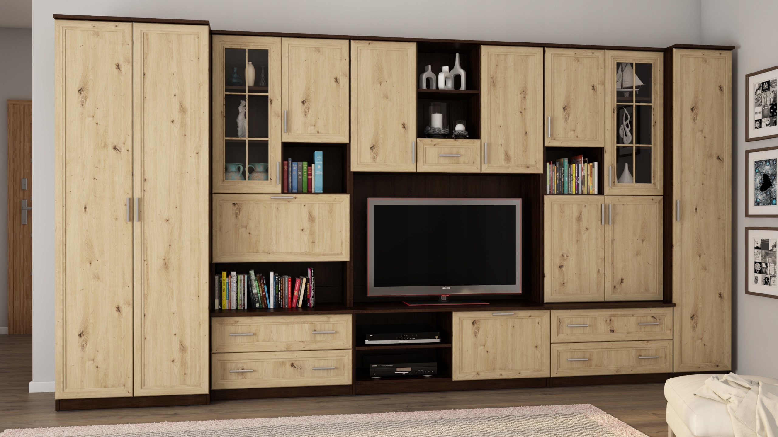 ⏺ 3 x расширения с множеством закрытых шкафов, открытых ниш, ящика и стеклянных витрин!
