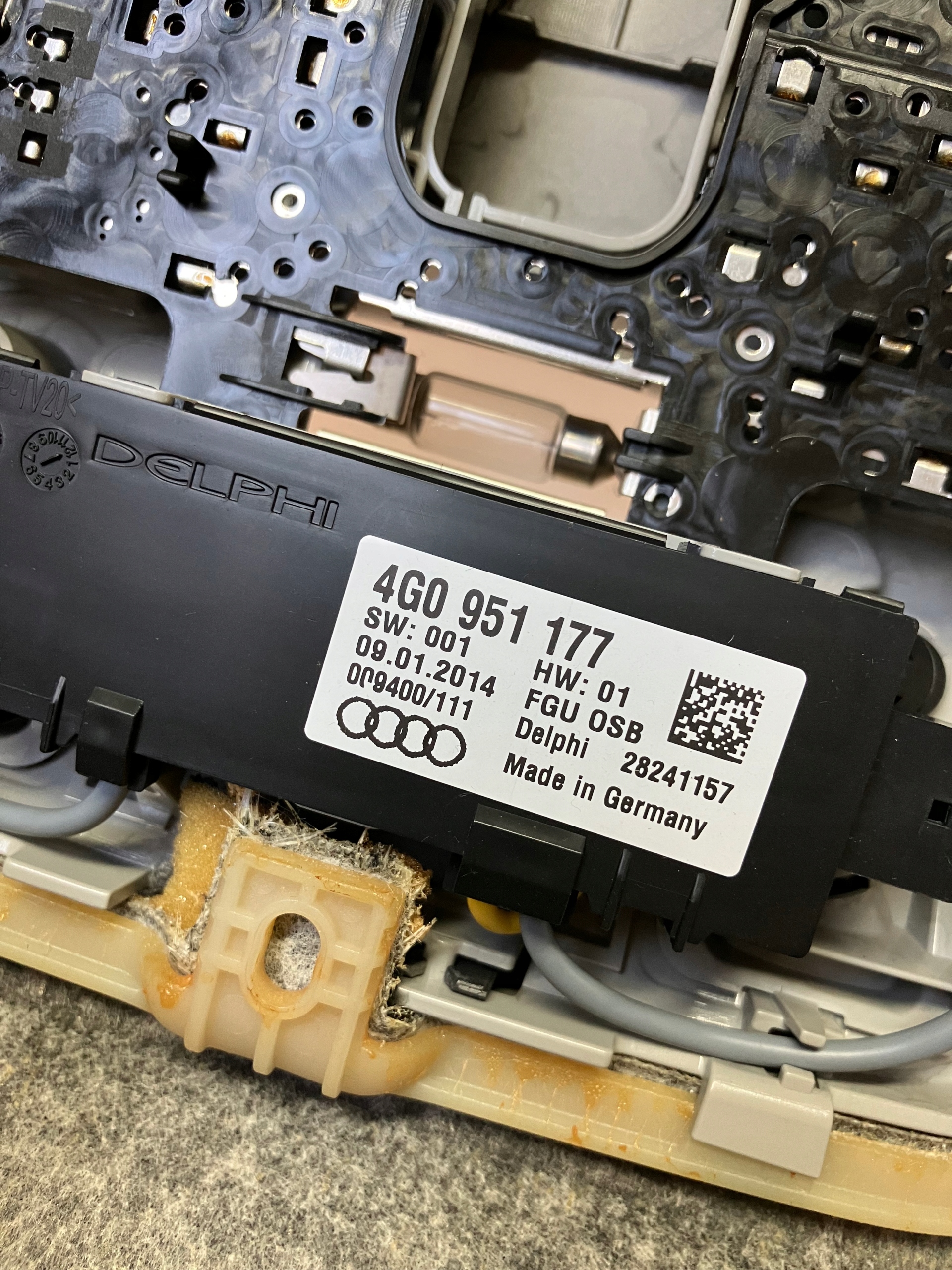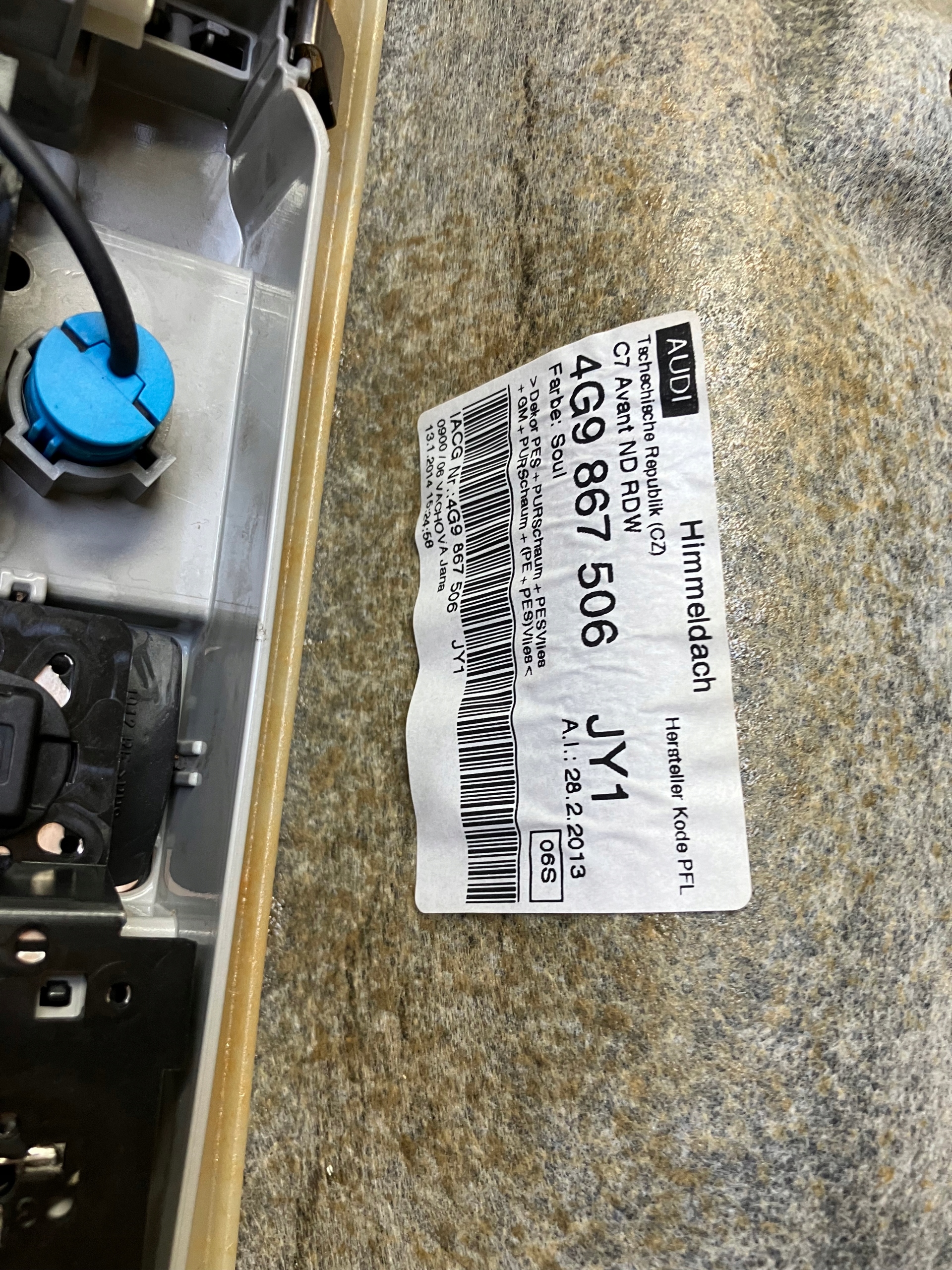 Комплект как на фотографиях, обшивка потолка со стойками, ручками, козырьками и зеркалом, снята с Audi A6 C7 2014 года, до рестайлинга, двигатель 2.0 Tdi, 177 л.с., маркировка CGLC Kombi, краска LX5N