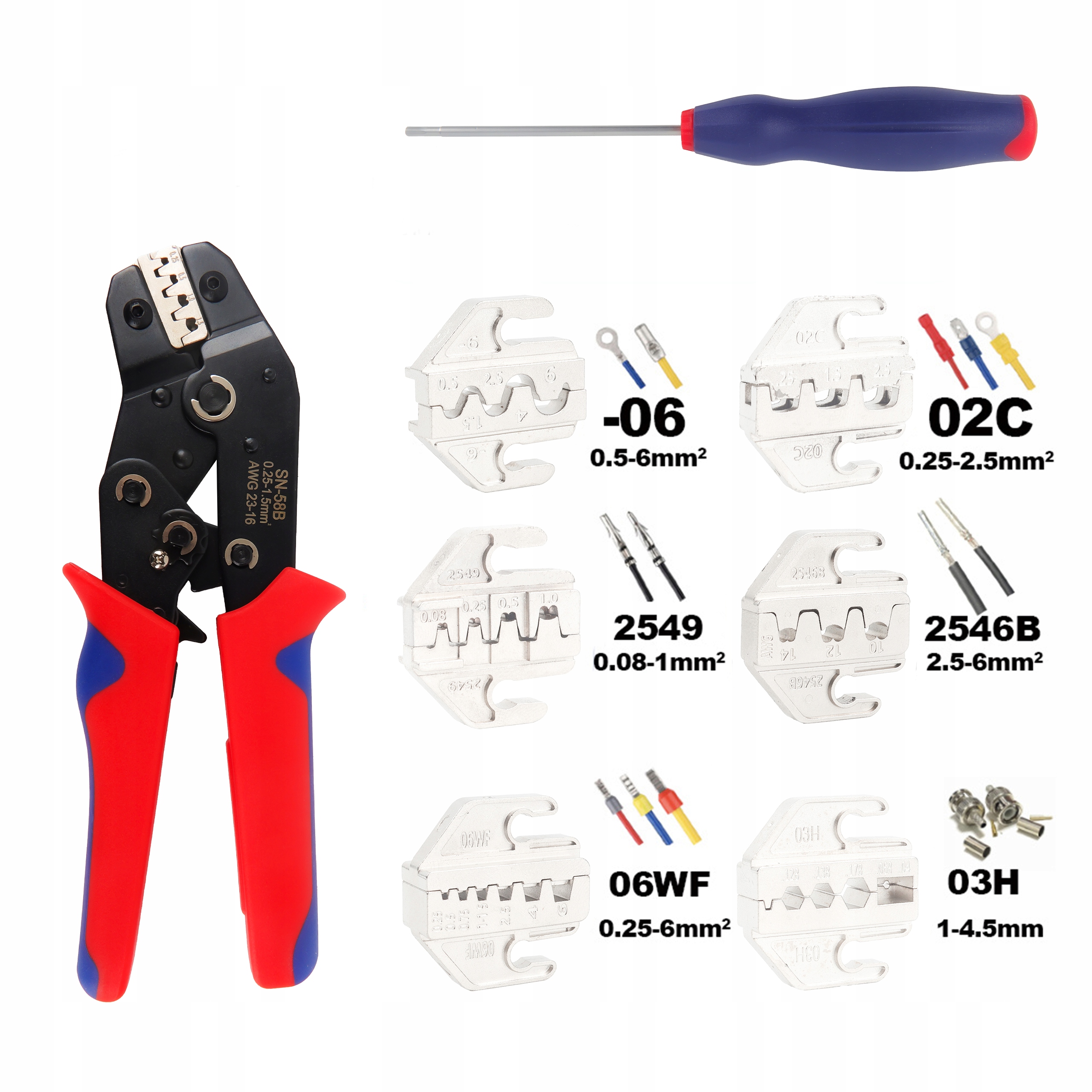 Эта модель крифера необходима в каждом сервисе электромобилей! Набор включает в себя 6 типов коленных матриц: не -нетралированные разъемы, безжисскую марку и вилку, концентрические кабели, фотоэлектрические кабели, изолированные кабельные рукава, изолированные разъемы и мини -разъемы. Он имеет автоматическую блокировку, которая позволяет вам открывать челюсти только после того, как разъем затягивается правильно. При зажиме замок может быть выпущен с помощью специального рычага вокруг защелки Слайдер, облегчение хранения и транспорта