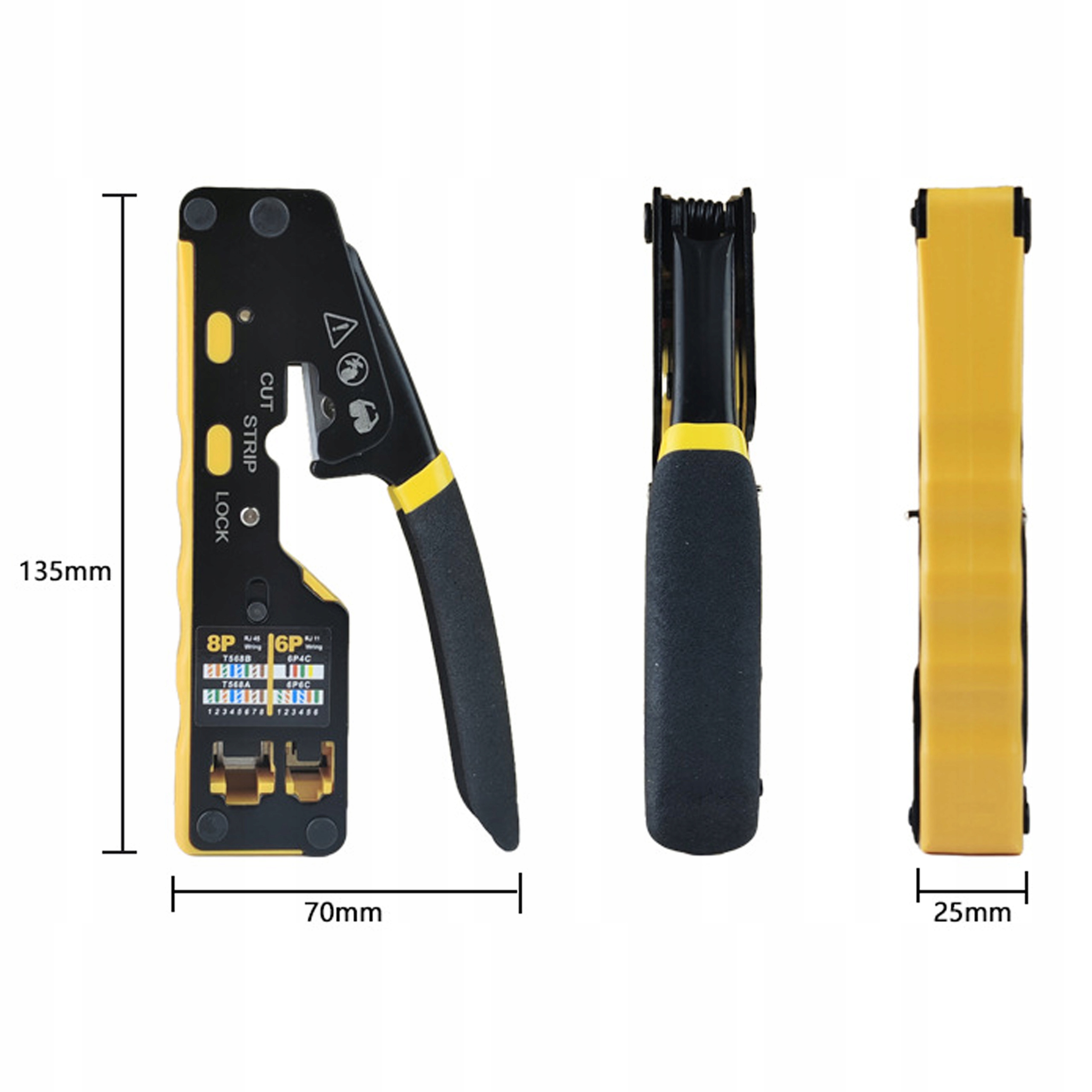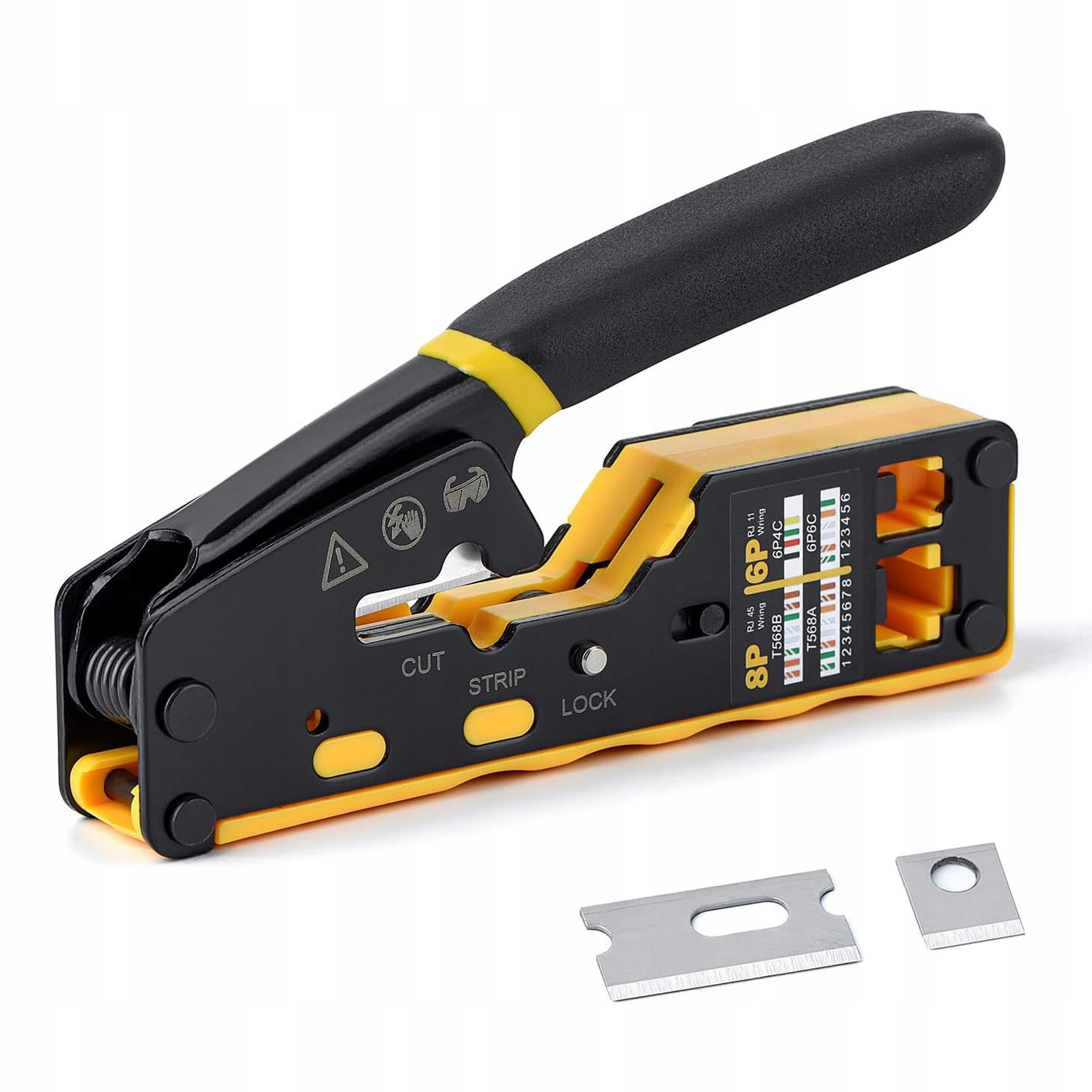 ✅ Проблема -безрезультатно, удаление и зажимные кабели Cat5, Cat5e и Cat6/6a. Устройство поддерживает 6- и 8-позиционный модульный разъем, включая RJ11/RJ/12 и RJ45, благодаря которому он становится всеобъемлющим решением для различных потребностей, связанных с концом кабелей.