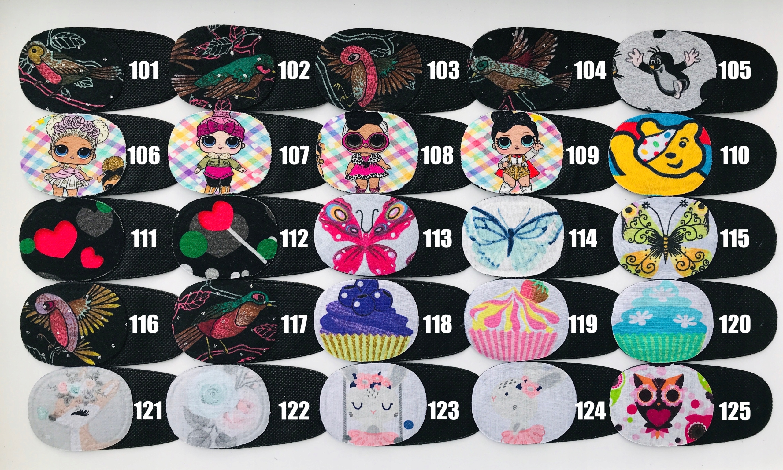 После покупки чехла укажите цвет, номер рисунка аппликации, цвет фона (A, B или C), а также для какого глаза - правого или левого ( R или L)