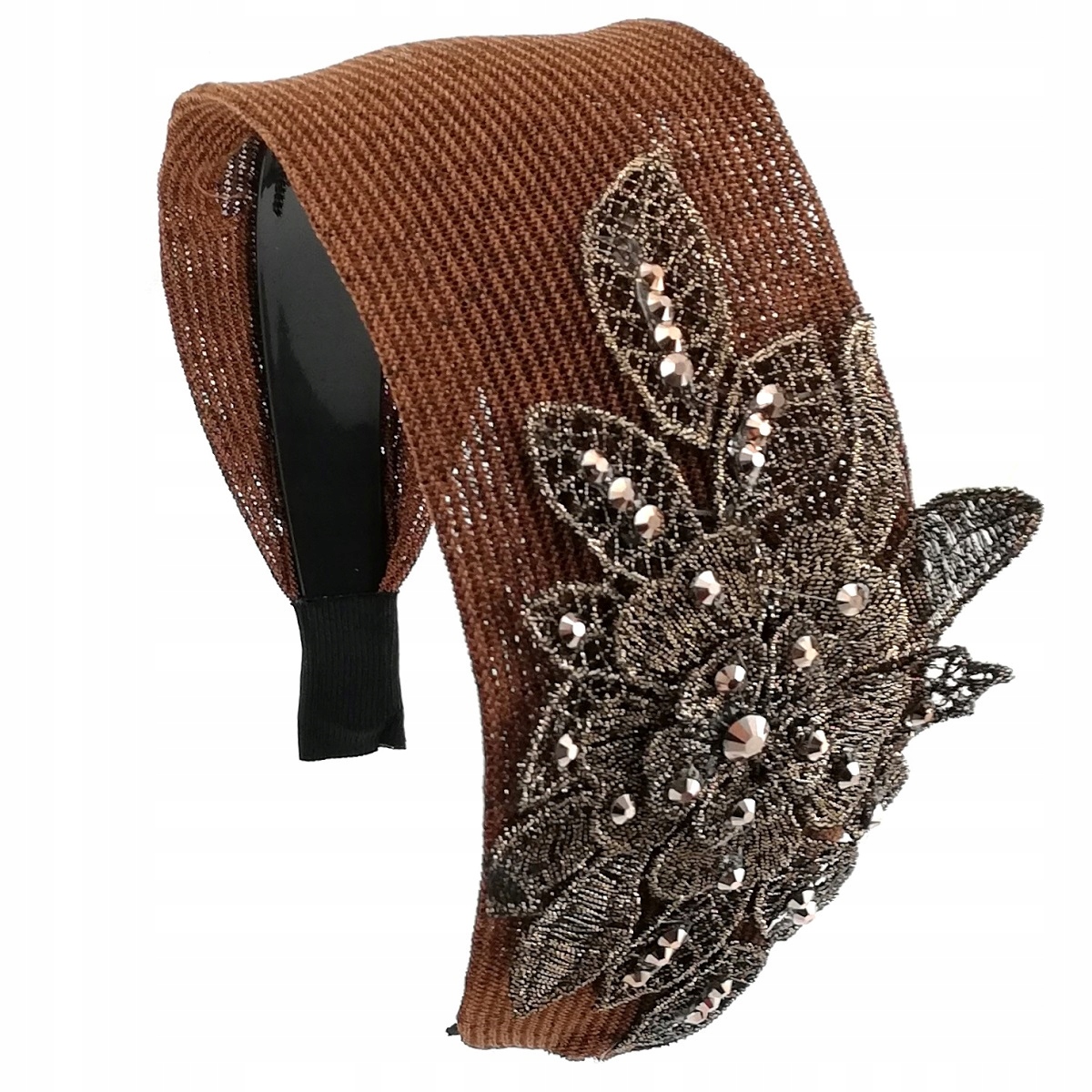 ОБОДКА ДЛЯ ВОЛОС ЖЕНСКАЯ, ЦВЕТОК, ШИРОКАЯ КОРИЧНЕВАЯ