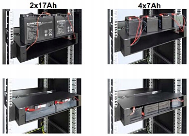 Ширина: 19 дюймов; Высота: 2U; Назначение: Батареи: 2 x 17 Ач, 4 x 7 Ач ;