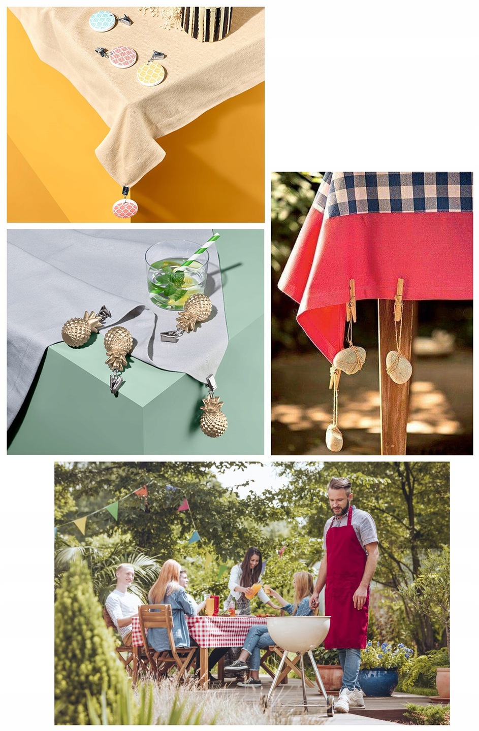 Лето, жаркое время года, в которое мы думаем прежде всего об отдыхе, праздниках , выходные на море или вечерние встречи у барбекю или костра. Длинные вечера побуждают приятно провести время в саду с семьей и друзьями. Грузики для скатерти не позволят ветру сдуть содержимое стола