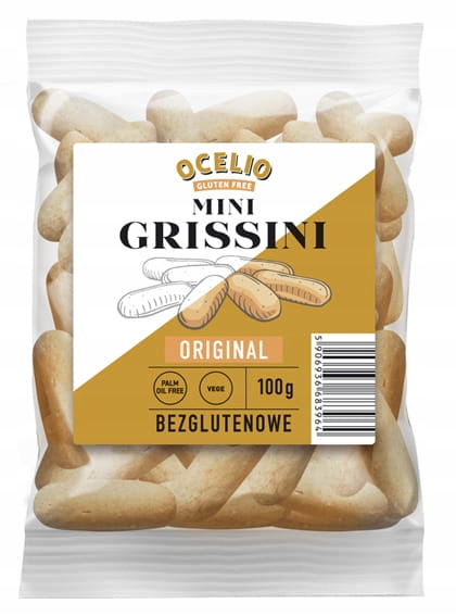 Популярный в Италии гриссини в мини-версии без глютена! Вкусный, хрустящий и идеален в качестве дополнения ко всем видам закусок — сыру, мясному ассорти или соусам. Мини-гриссини Ocelio изготовлены из кукурузного крахмала, гречневой и рисовой муки – эта смесь делает вкус безглютеновых гриссини идентичным традиционным итальянским деликатесам. Палочки Ocelio безопасны для людей, соблюдающих безглютеновую диету, и людей, страдающих целиакией.