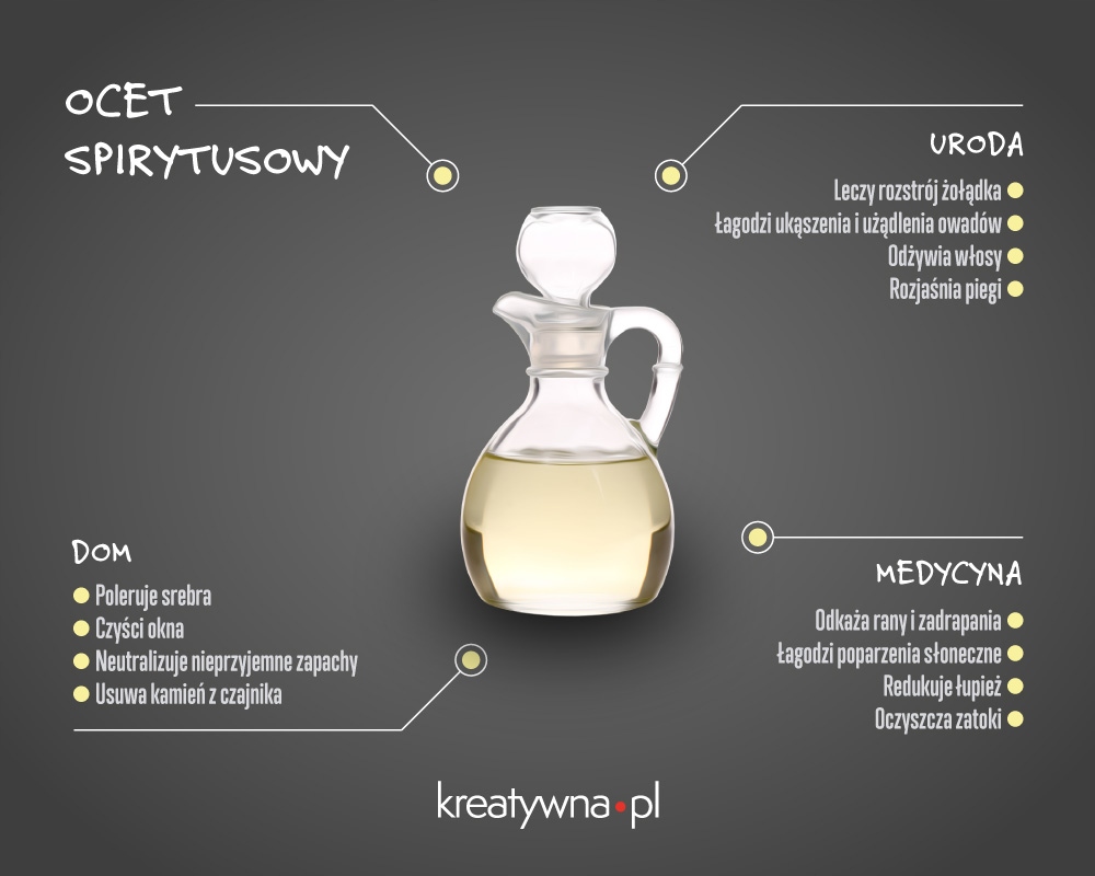 Спиртовой уксус обычно используется в кулинарии. Это распространенный ингредиент соусов (например, традиционного винегрета или майонеза) и маринадов для консервирования огурцов и грибов. Кроме того, его используют в качестве приправы для мацерации рыбы или мяса перед запеканием и жарением, а также для подкисления супов, например красного борща.