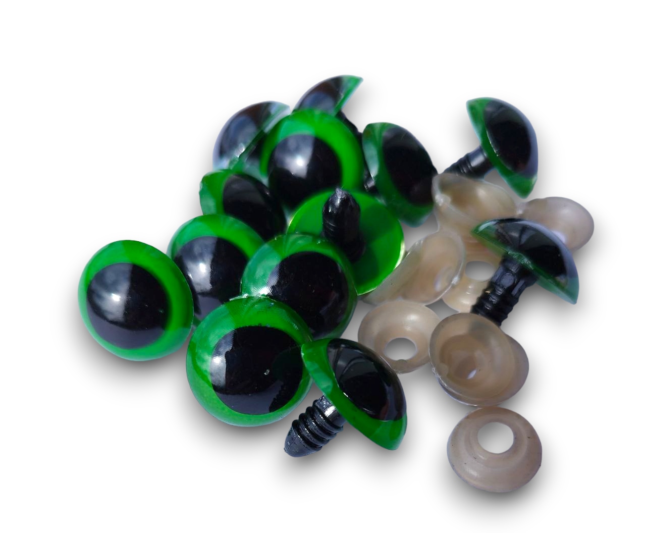 Глазки-люверсы 18ММ 10шт для игрушек Зеленые гофрированные (5 пар) Сейф