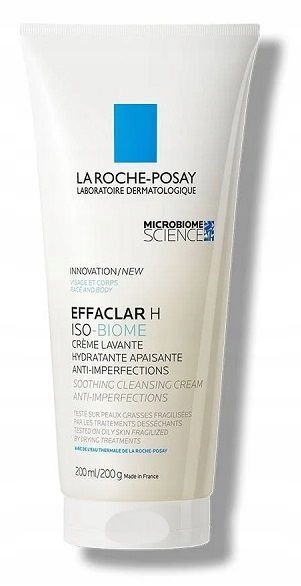 La Roche-Posay Effaclar H Iso-Biome — успокаивающий очищающий крем против несовершенств кожи, который был протестирован на жирной коже, чувствительной к подсушивающим средствам против прыщей (например, изотретиноин) с добавлением успокаивающей термальной воды от La Roche-Posay. .