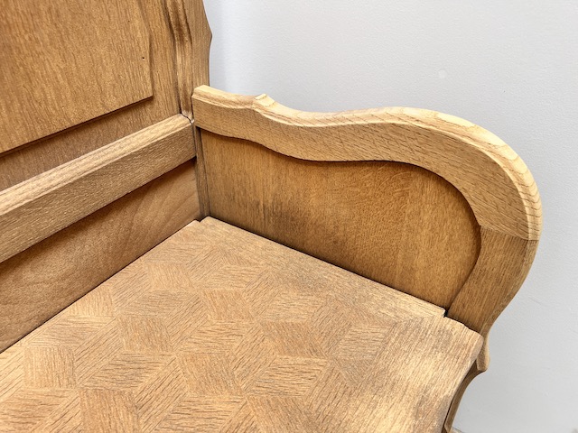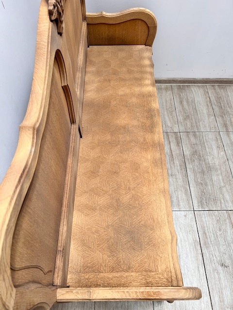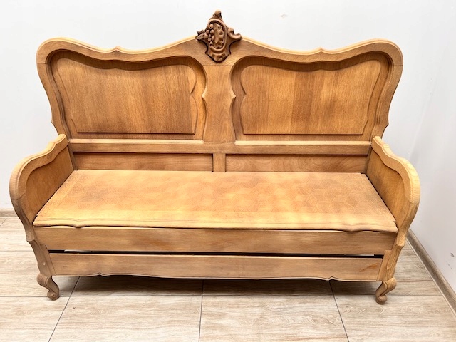 Дубовая скамейка в стиле Людвик. Сделано нами. Гламурный; красиво оформлен. Скамья очищается от внешних покрытий. Он предназначен для дальнейшей покраски, нанесения воска и т. д. Сиденье можно обить или положить на него подушки. Повреждений и дефектов нет. Готов к дальнейшей работе.