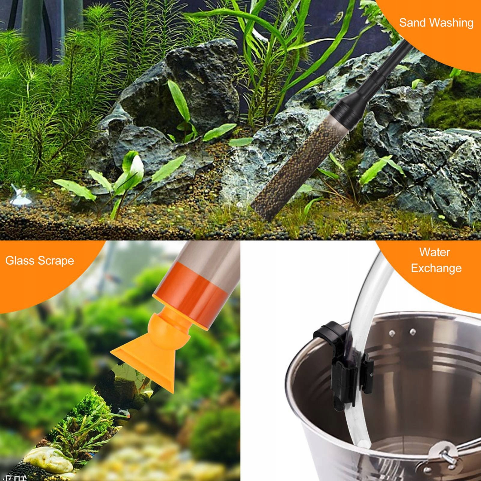 3. 3 в 1 Функция: этот аквариум -сифонный вакуумный очиститель имеет 3 функции изменения воды, промывание песка и сосание примесей, помогает в эффективном изменении воды при переносе примесей из аквариума.