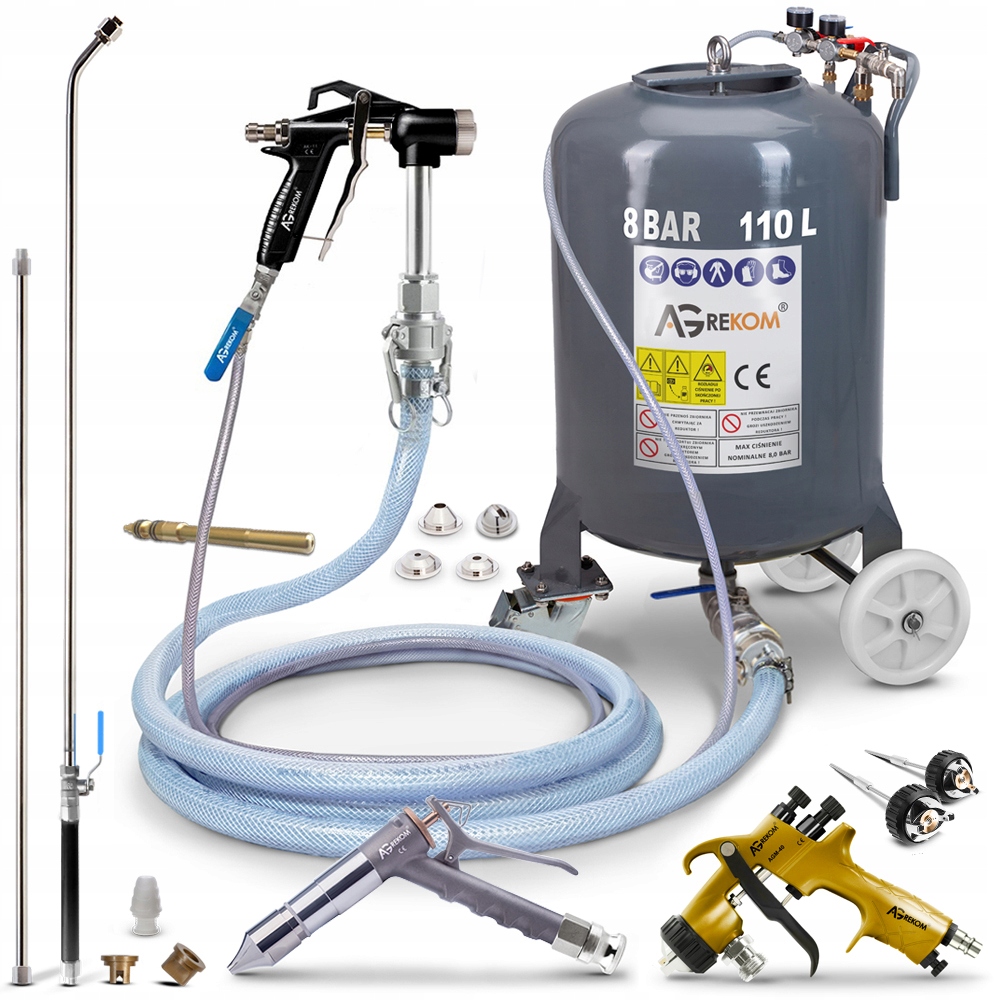 ✅ mb,✅ Максимальное рабочее давление: 8 бар. Возможность независимой регулировки давления в баке и пистолете,