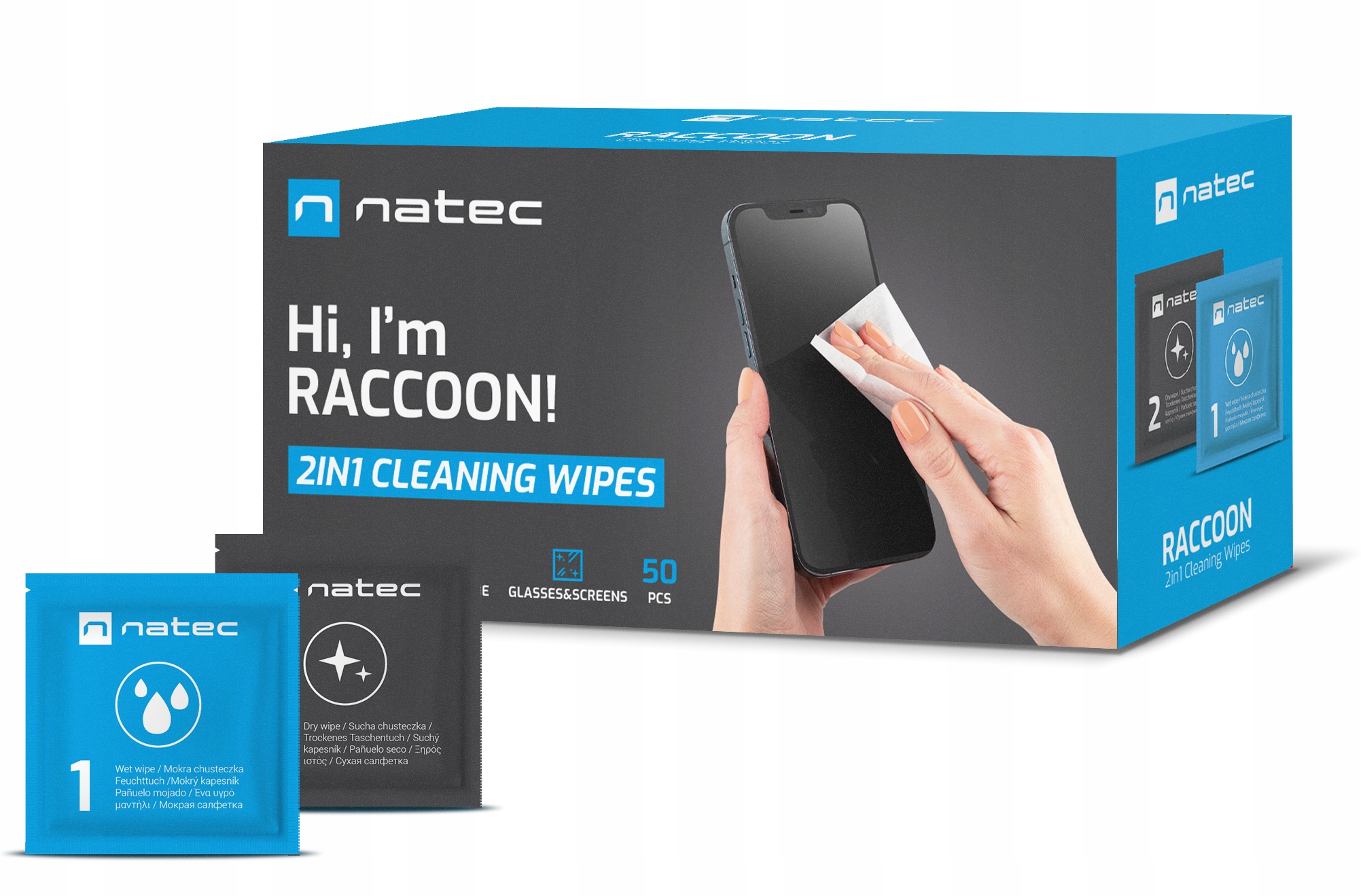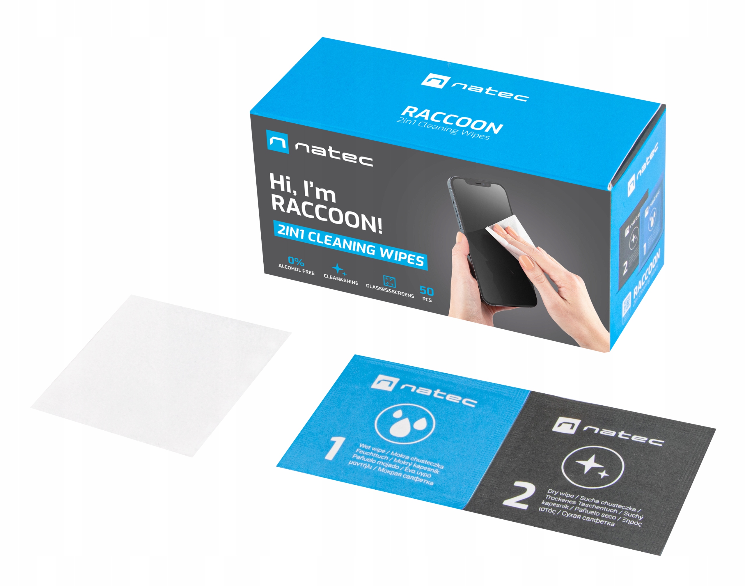 Очистка салфетки Natec raccoon 2in1 Очистка Wites Wet-Dry 50 ПК